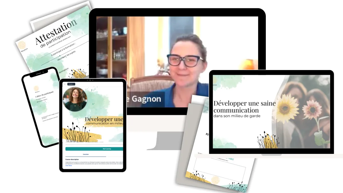 Pendant la formation, tu pourras partager tes défis et tes questions et discuter avec les autres éducatrices présentes via le clavardage pour repartir avec un maximum d'outils pour progresser dans ton quotidien.